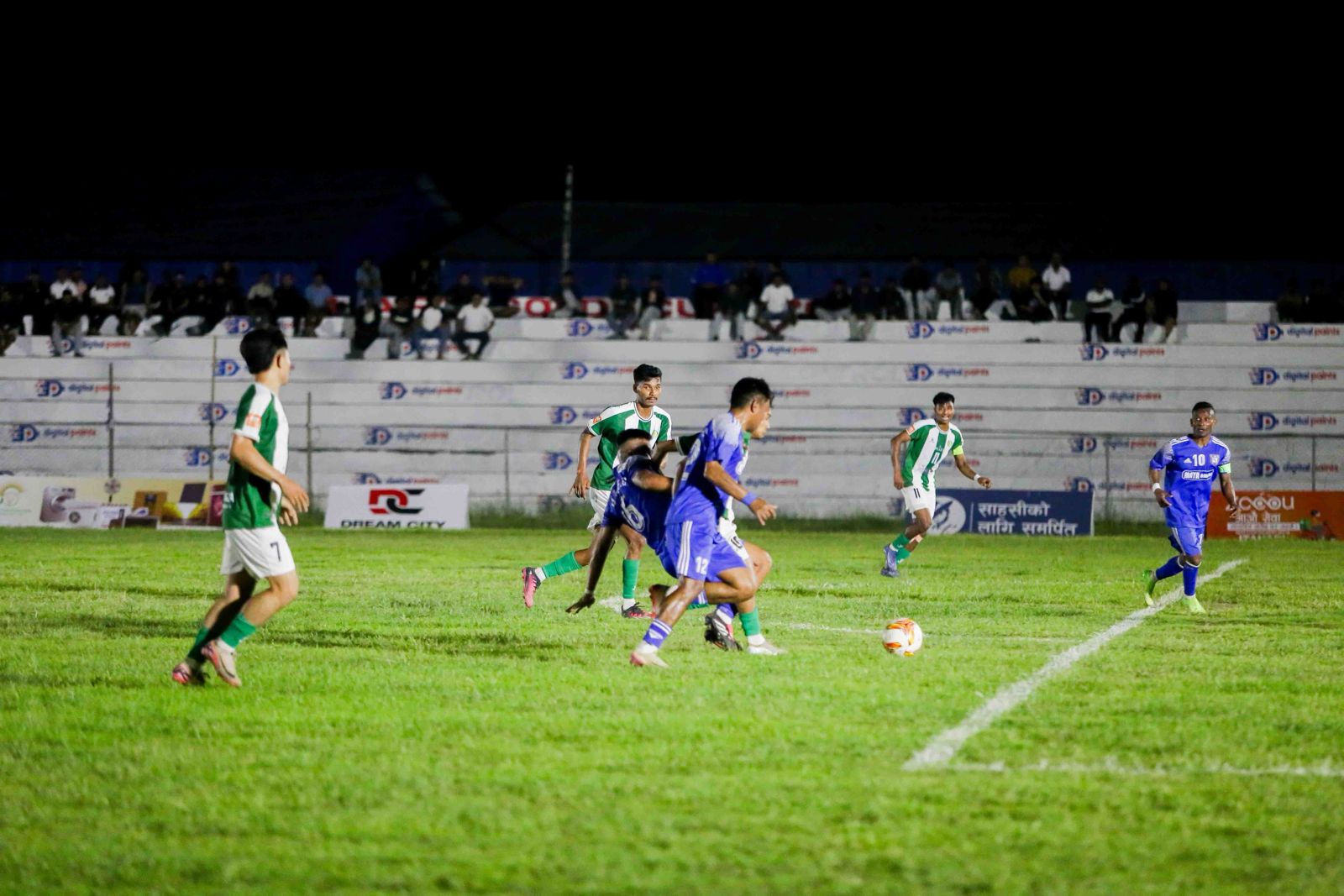 यस्तै २७औँ मिनेटमा डिफेन्डरको कमजोरीको फाइदा उठाउँदै धिरेन्द्रले गोल थपेपछि प्लानिङ ब्वाइजले पहिलो हाफमै ३–० को अग्रता बनाएको थियो ।